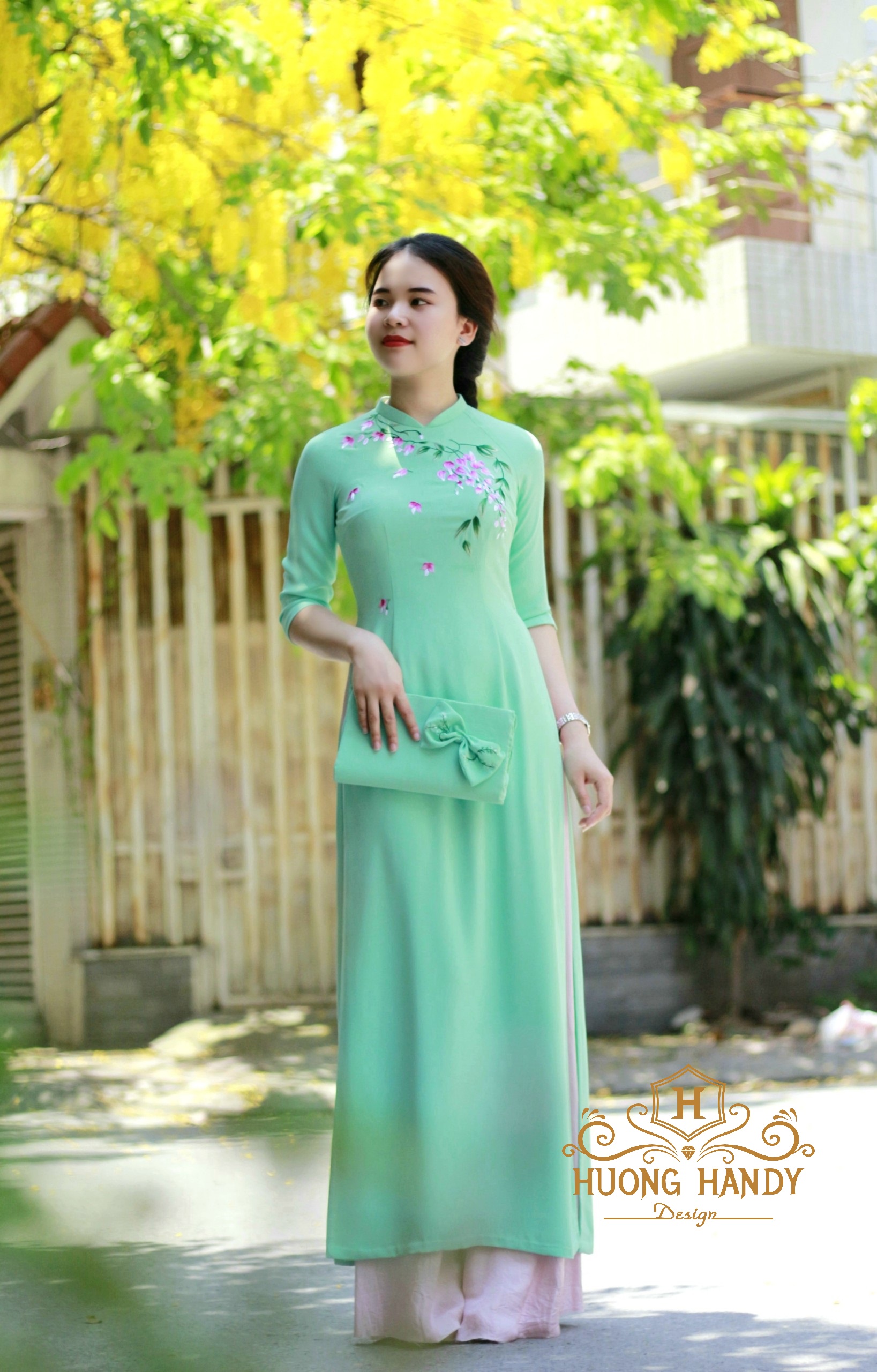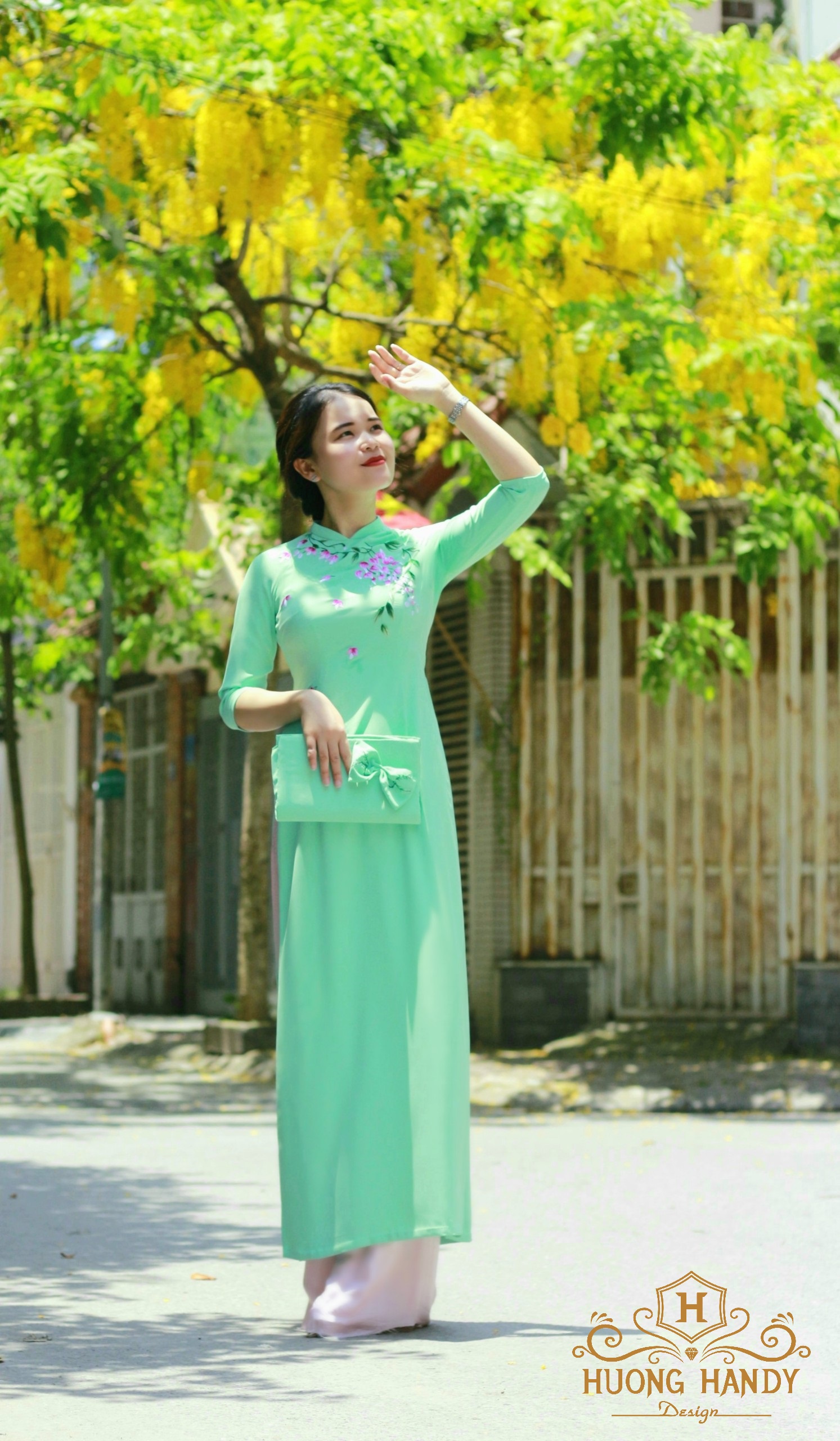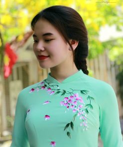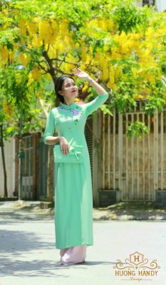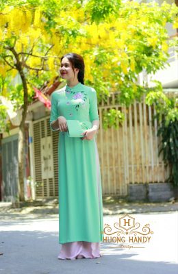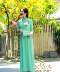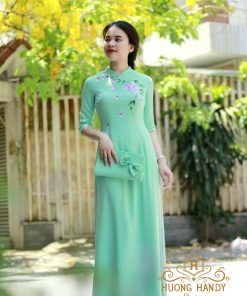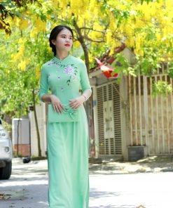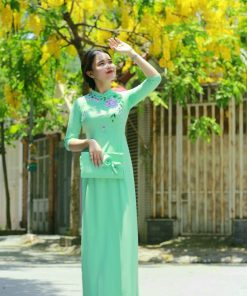 Be the first to review “Áo dài xanh thiên thanh thêu hoa”