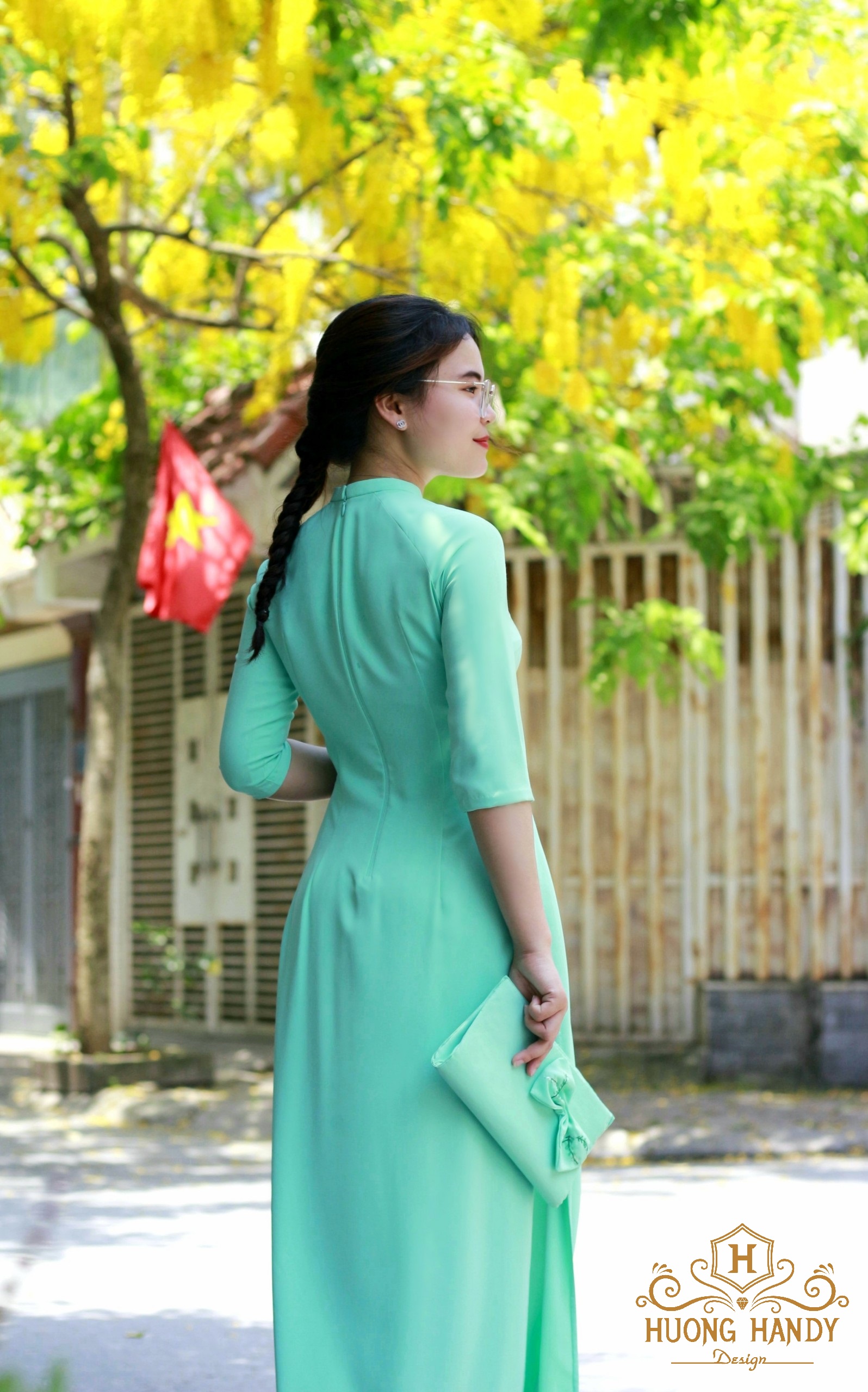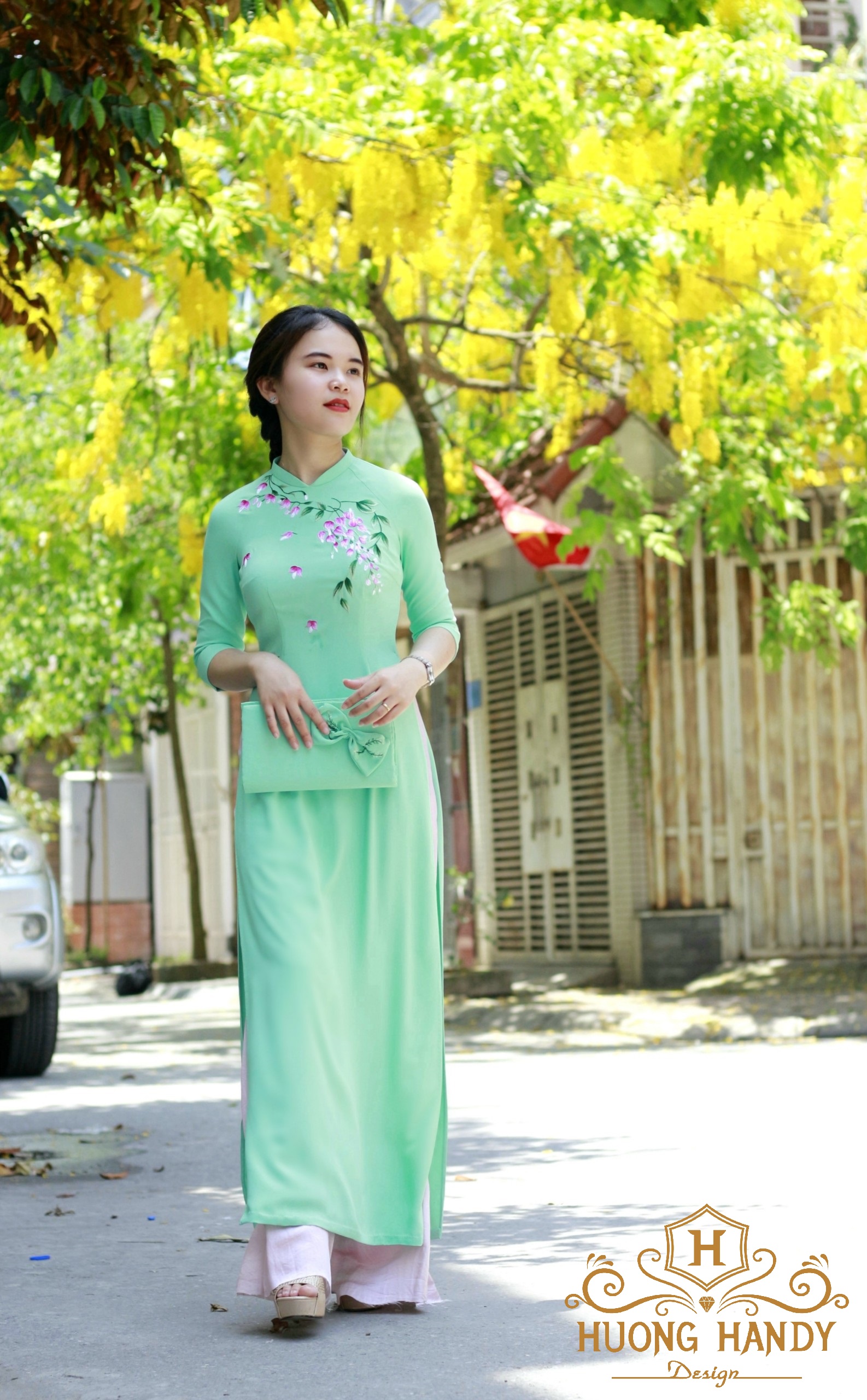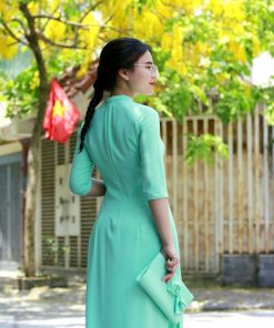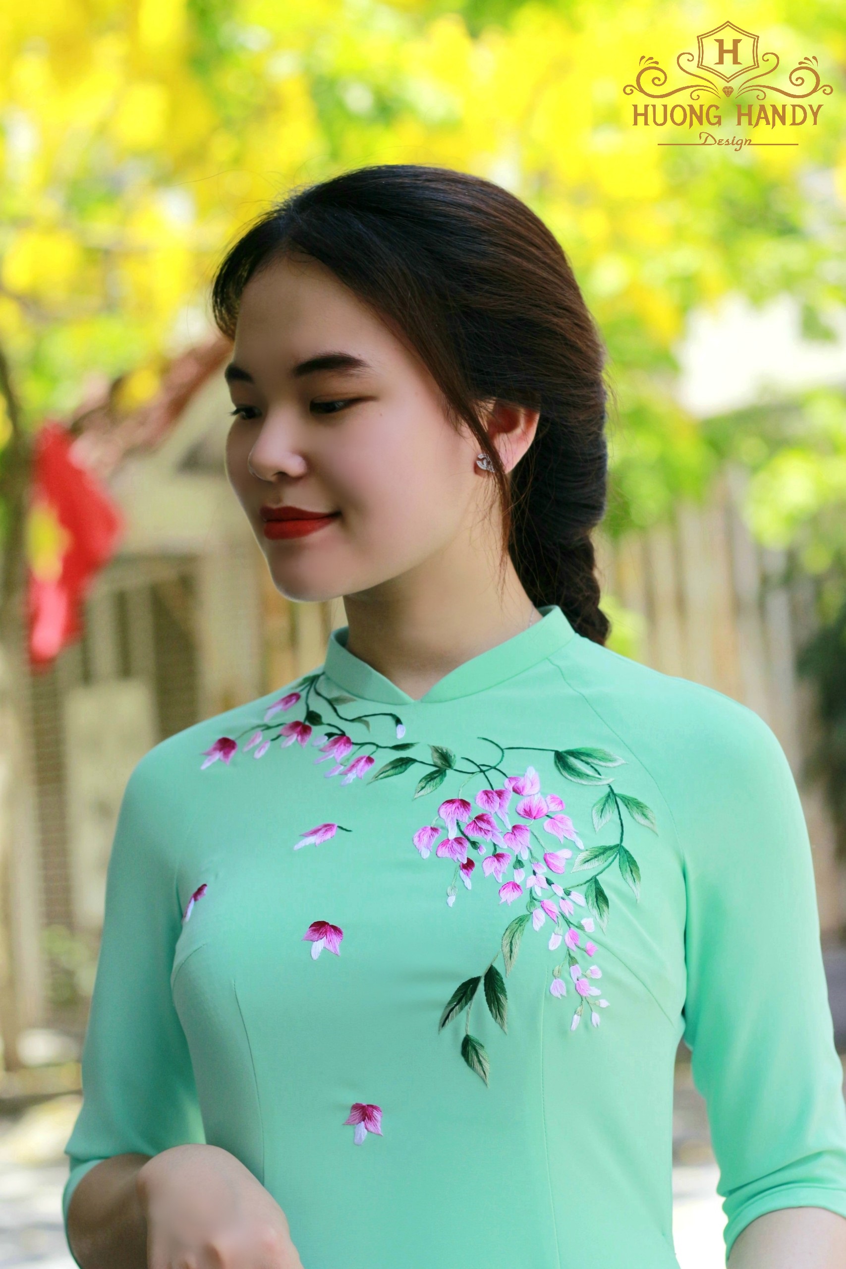 Be the first to review “Áo dài xanh thiên thanh thêu hoa”