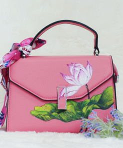 Be the first to review “Túi da nắp cỡ trung vẽ hoa sen -HT230306-Hồng”